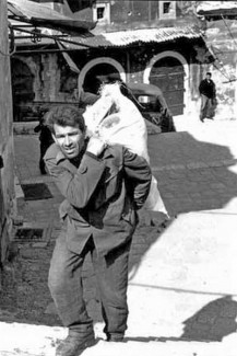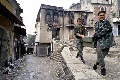 13 Jun 1993, East Mostar, Bosnia and Herzegovina --- Bosnian side of Mostar. Since early May, the Bosnian-Croat forces (HVO) and the Army of Bosnia and Herzegovina have been fighting. The old city is divided in two parts, with the West run by HVO and the East by the Bosnian Government. The old bridge of Mostar, the city's most recognizable symbol, was destroyed during the campaign. --- Image by © Patrick Chauvel/Sygma/Corbis